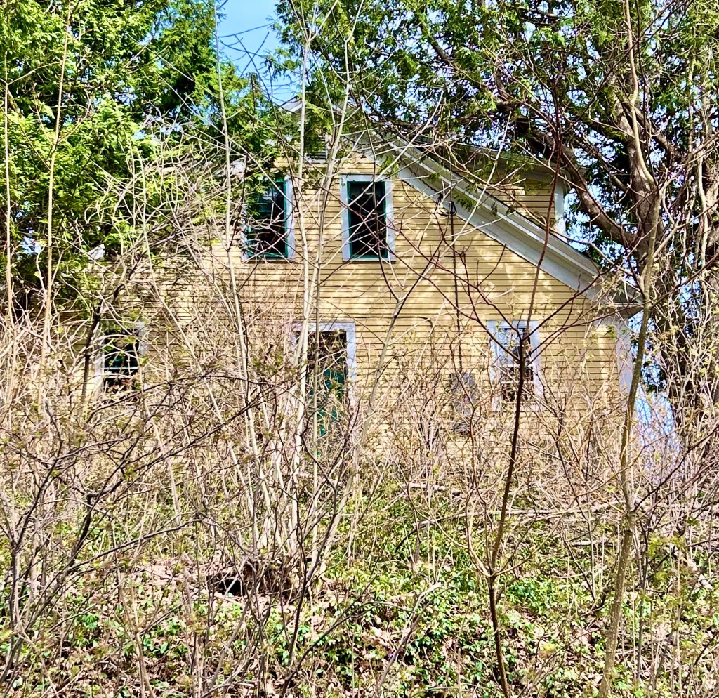 April, mud season, it’s just me and a young woman with an infant cradled on her chest. I read for a bit, and then as I’m gathering my things, a car pulls up with two young women. They run to the woman and the baby, laughing and shouting, gleeful.