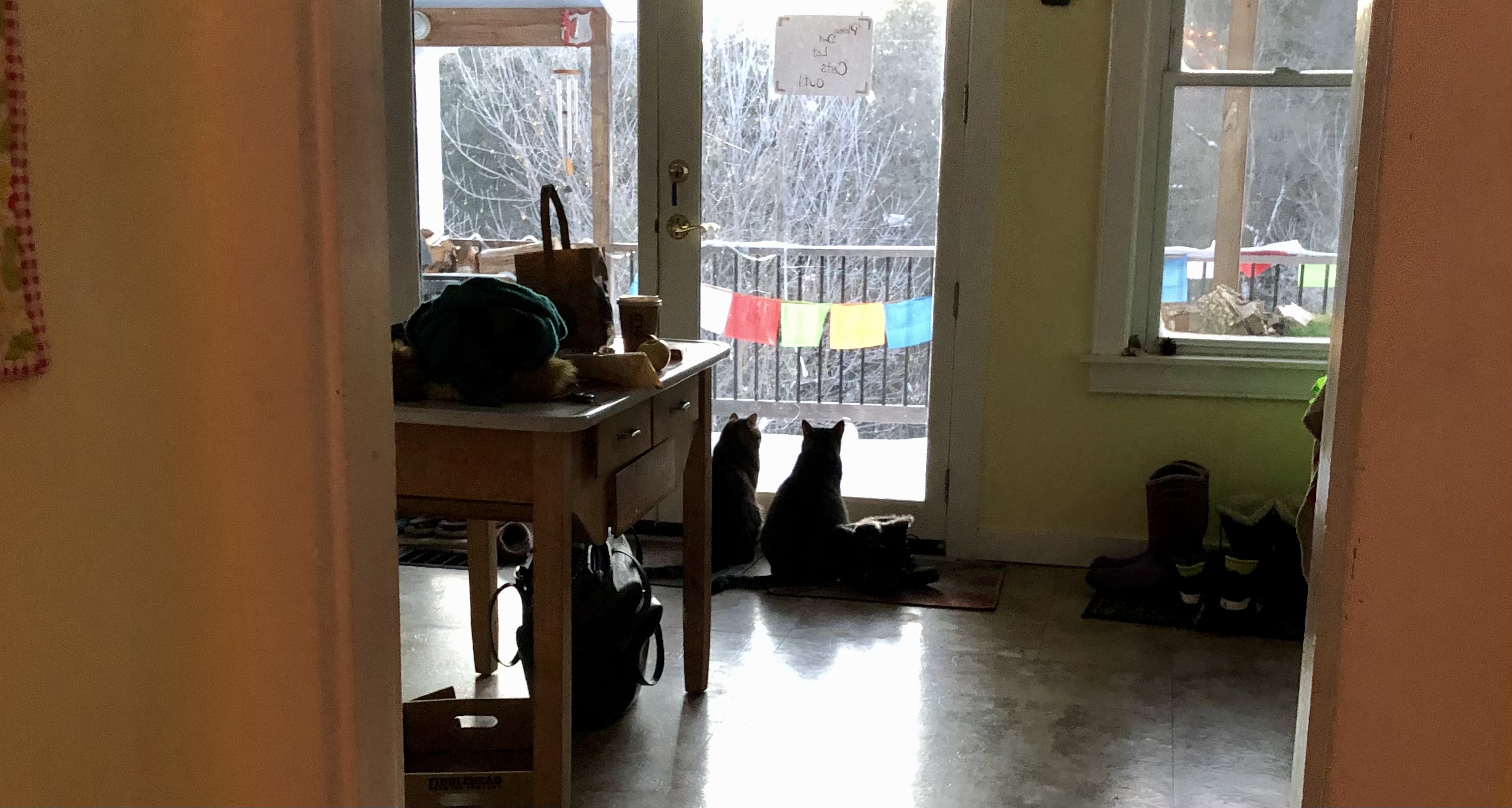It was below zero when we arrived, and the three of us stood very near a crackling fire watching the winter twilight sink through deepening shades of blue into dark. We were outside a theater where I attended a fantastic poetry reading just before our world shut up last March.