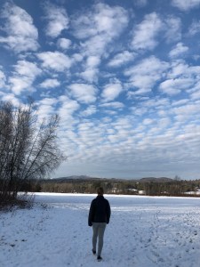 After we drop her off, my youngest and I walk around town, and I buy her a watery hot chocolate in the one place that appears to be open that morning. It’s cold, and we end up back in the car, watching a few skiers on the town’s rec fields.
