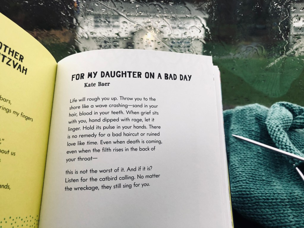 My sister in law gave me Kate Baer’s book for Christmas. I only got to it last week and opened it to this exact poem. My daughter was home from college after a hard decision was made for the college to discontinue the draft horse crew (which she was part of and loved, loved, loved). She was still reeling from the news, but adjusting to the idea. I read her this poem. It helped. xo