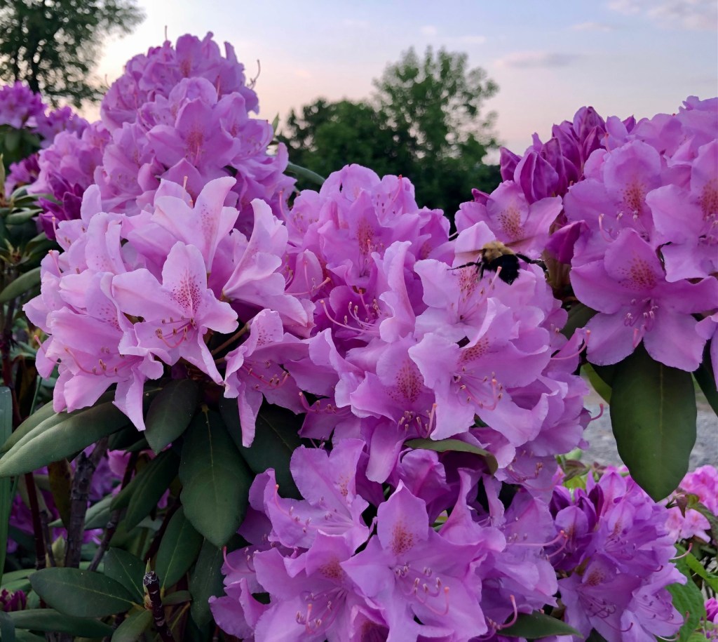 While the daughters tie their kayaks on roof racks, I sit in the grass, keeping company with hungry bumblebees in the rhododendrons.