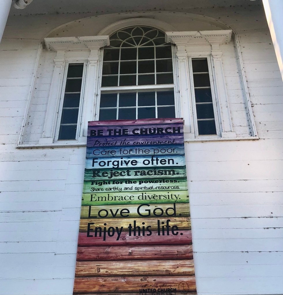 A half-moon rises in the darkness as I drive along the Connecticut River. These days — long days — I’m grateful for these imposed breaks, for the opportunity to see the moon rise along an unfamiliar horizon, to stop before a church and read the congregation’s exhortation: Enjoy this life.