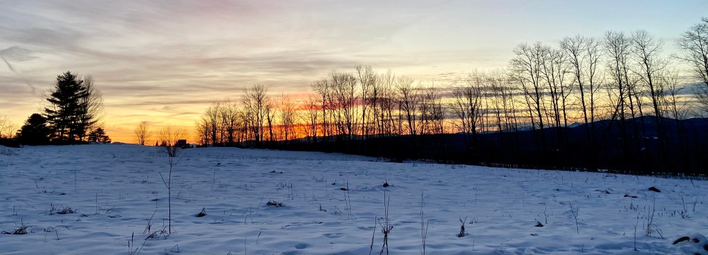 Returning home one late afternoon, I pause beside Woodbury Lake. A crescent moon illuminates the blue-black sky, the outline of its orb a faint round: a promise of January’s full wolf moon. Twilight’s but a few moments, molten gold rapidly consumed by the unstoppable night.