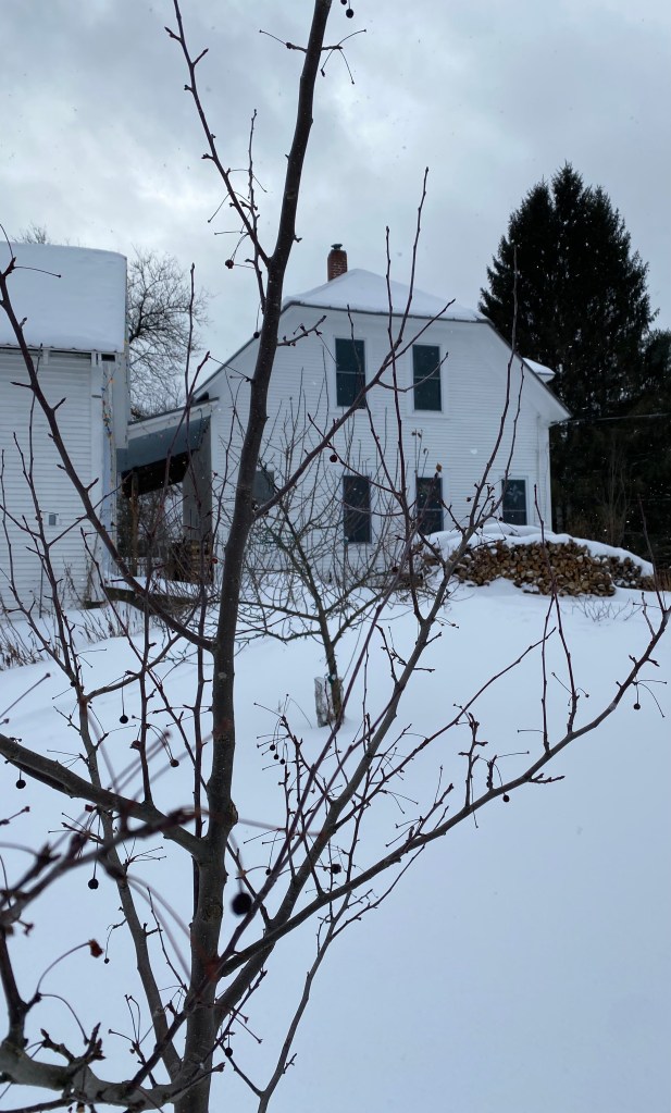 Bootstep by bootstep, my strength begins to return. It’s cold, darn darn cold, slicing at my eyes and cheeks. The cold and I are no strangers. I made maple syrup for years in an unheated outbuilding, raised my daughters in a house with scant heat, have spent decades of my life tromping beneath snowy trees in search of…. what? The usual things I suppose, by which I mean the unexpected. Or maybe just the sheer loveliness of a fresh snowfall.