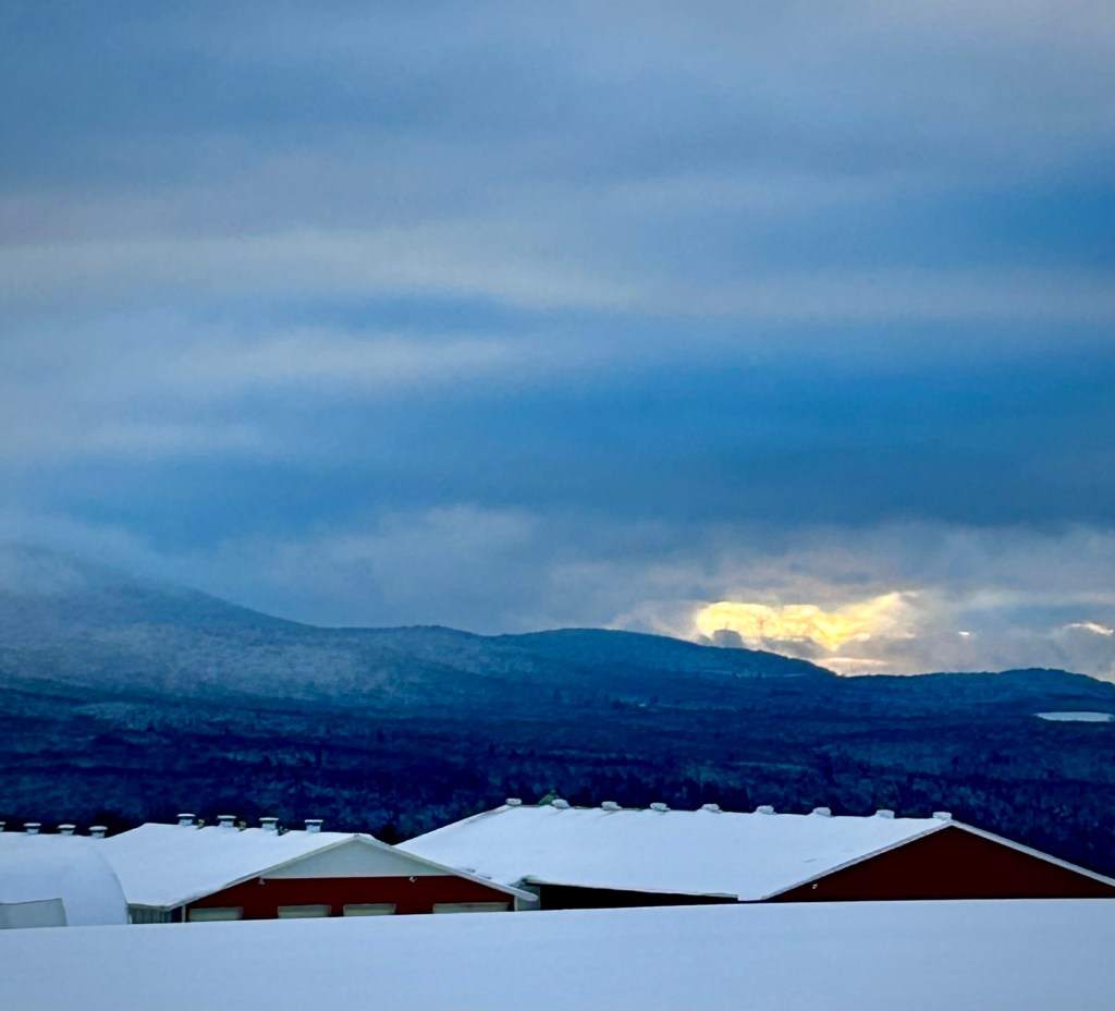 Walking downtown, I pass the coffee shop. Two friends at a window table wave at me to come in, come in. Inside, I shrug off my coat that’s in need of washing and set my backpack on the floor. We talk books and woodpile status, politics and the amnesia of American consciousness. Above the coffee shop is the yoga studio with the gleaming maple floors, where I stand at the window, watching traffic ebb into the diner parking lot. The river bends through the village here, heads westward beneath the cover of ice towards Lake Champlain, whose waters flow north. In the alley between this brick building and the next, the wind cuts upward. Snow drifts towards the sky.