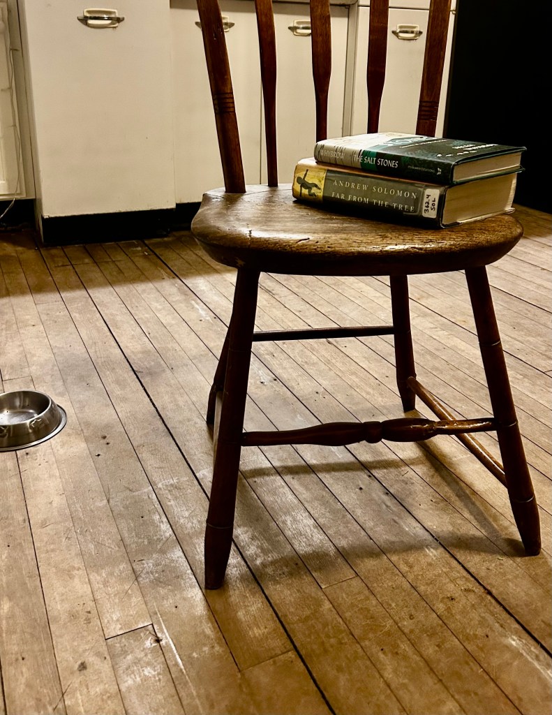 While the radio carries in terrible news, the carpenter tears off the vinyl on my kitchen floor. I run my hands over the worn maple boards that are revealed to the daylight again. In one corner, a rotten board where perhaps the sink leaked. The carpenter cut out those pieces, and I look down at the basement’s graveled floor. In another corner, there’s a blackened place where perhaps a woodstove once charred the flooring. He and I stand there, considering, wondering about who once lived in this house. I wonder about their patterns of heat and sustenance, these people who passed from this world, decades ago.