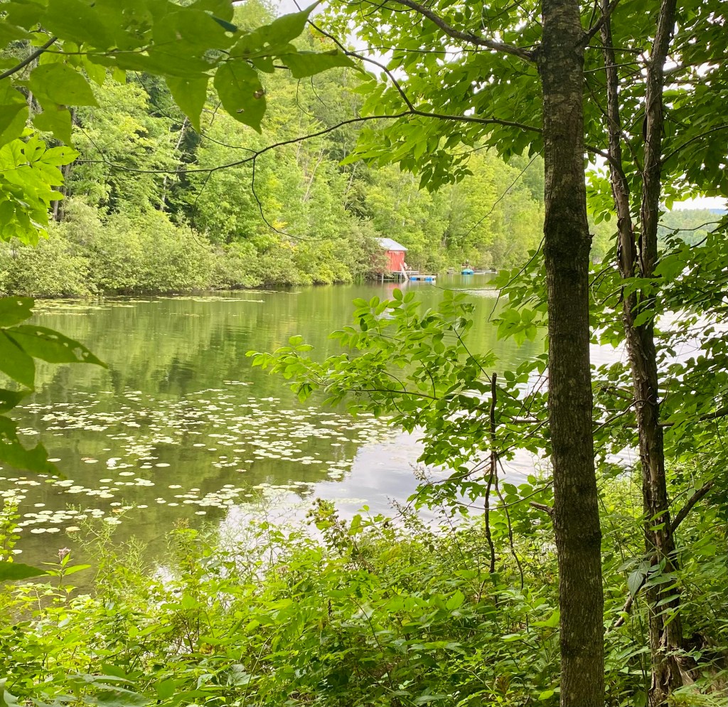 And even though my daughter is at home waiting for the cheese for that pizza we’ll make from onions and basil and tomatoes I’ll snag from the garden, I leave my few groceries in my Subaru and follow my companion through the damp woody patch behind the co-op. We stand at the river’s edge. She leans far out over the water. Look, she says.