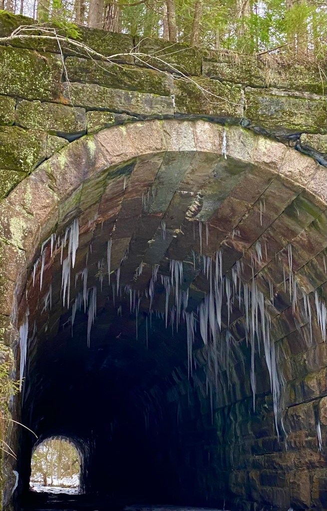 As for the photo above, our Christmas adventures involved inspection of the July flood’s toll on the rail trail’s bridges. Christmas Day, we followed the former railroad bed deep into the woods, where this enormous culvert was skillfully and laboriously constructed a few generations ago. For reasons that need no elaboration, this seems a fitting photo for the trailing end of 2023. Unless you know by word-of-mouth or friend, you could walk through these woods and never see this beauty. Which would be a kind of loss.