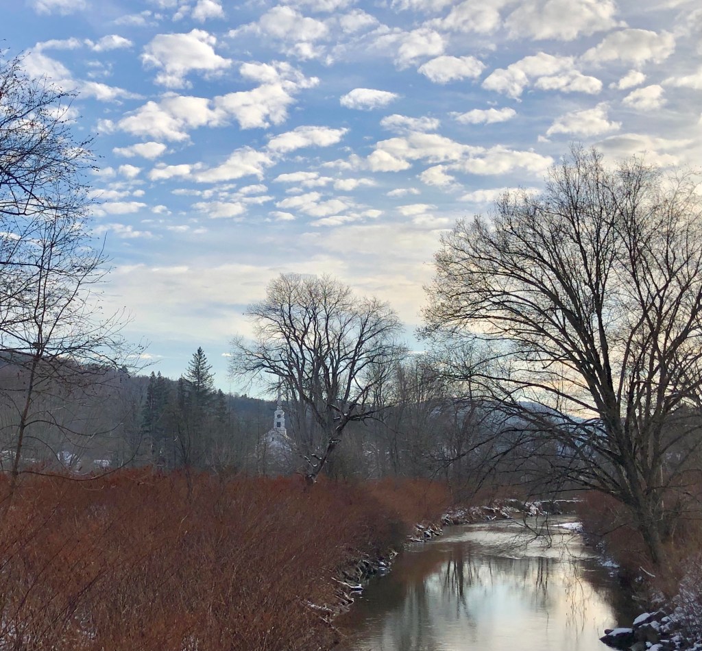 I tell the woman my daughter is in the field, on the other side of the ruins of an old house, marked by maple trees. My youngest goes ahead, and I walk with the woman, lifting strands of electric fence that have been turned off for the season. In a break in the parting clouds, the sunset appears briefly as a dark bruise in the sky, before the night swallows it up. It’s balmy yet, for December; but it is early winter, and I know our house will be warm when we return.