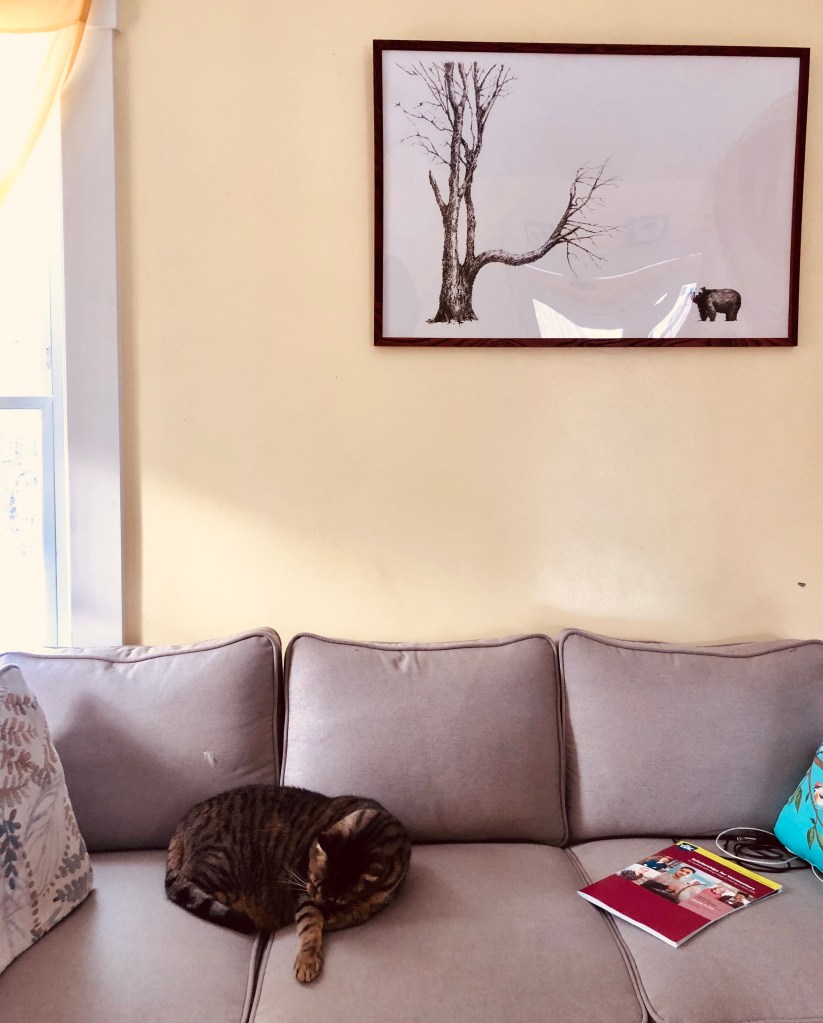 There’s a few houses like this in that neighborhood, the paint gray, the windows filthy, tiny yards gone over to weeds or dirt. In the pandemic’s craze, people moved back into a few of these, converting abandoned places into homes again. The driver of a fuel truck stood outside this house yesterday with a young couple, the three of them talking seriously, nodding heads. Sheets of foam insulation leaned against the house. On the side wall, someone had ripped off the dirty plastic and exposed a large square window, its top edge red and blue stained glass. Without stopping, I wondered what else was inside the house.