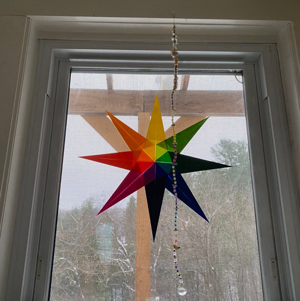 Later, a friend stops by with good cheer and belated and welcome Christmas presents. The sun is yet bright. We walk, slowly, slowly, on the short stretch of dead-end road before my house. I point to a robin perched in a pin cherry. She spies last summer’s hornet nest spun into the lilacs, a nest on the neighbor’s windowsill.