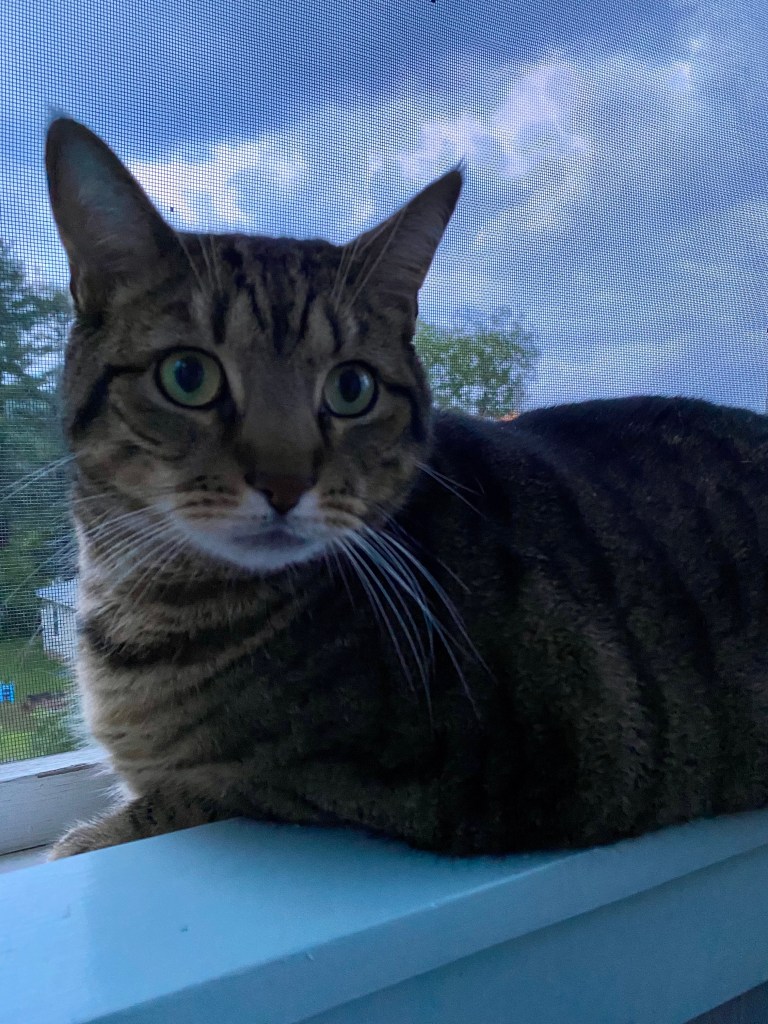 The robins’ destiny is, of course, neither here nor there. We didn’t make the nest, and whether this family survives is largely beyond my purview. Certainly, my curious housecats will not harm these young ones. Yet I’m curious as my cats, wondering what drove this family to our porch.